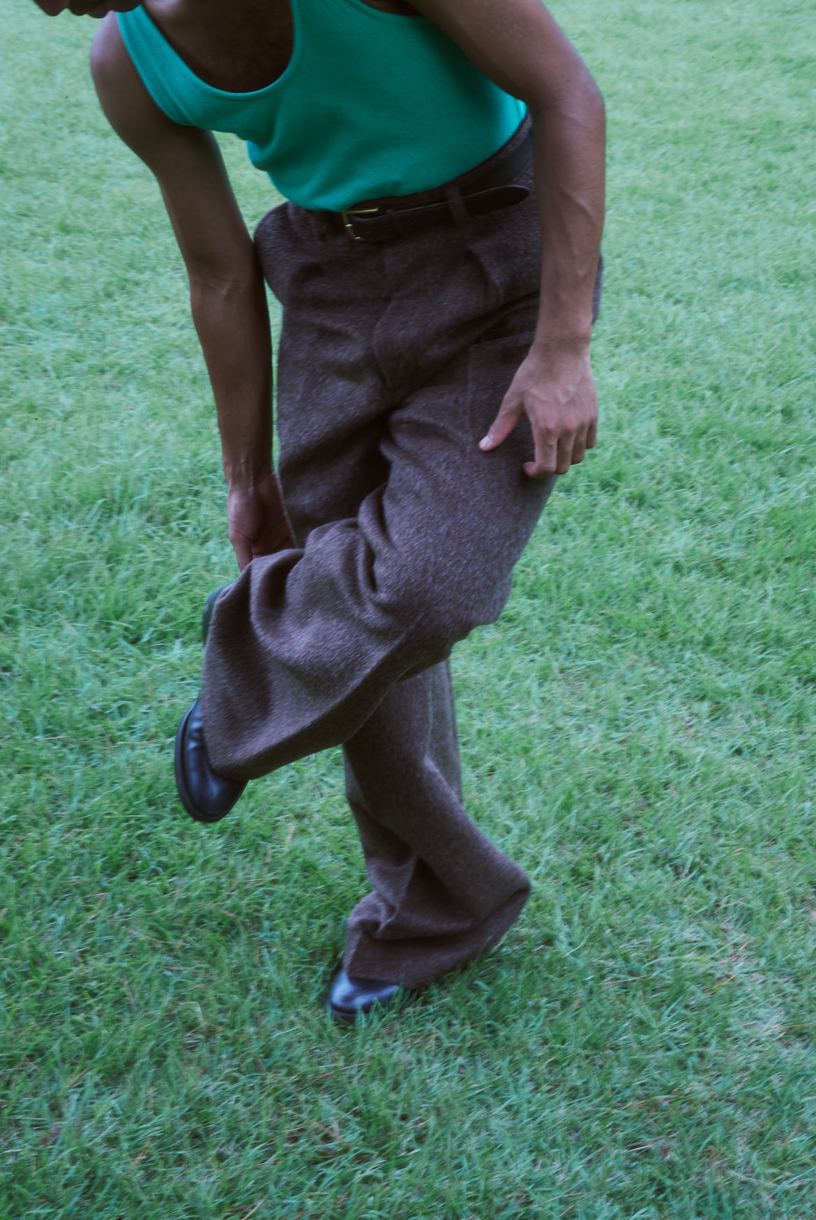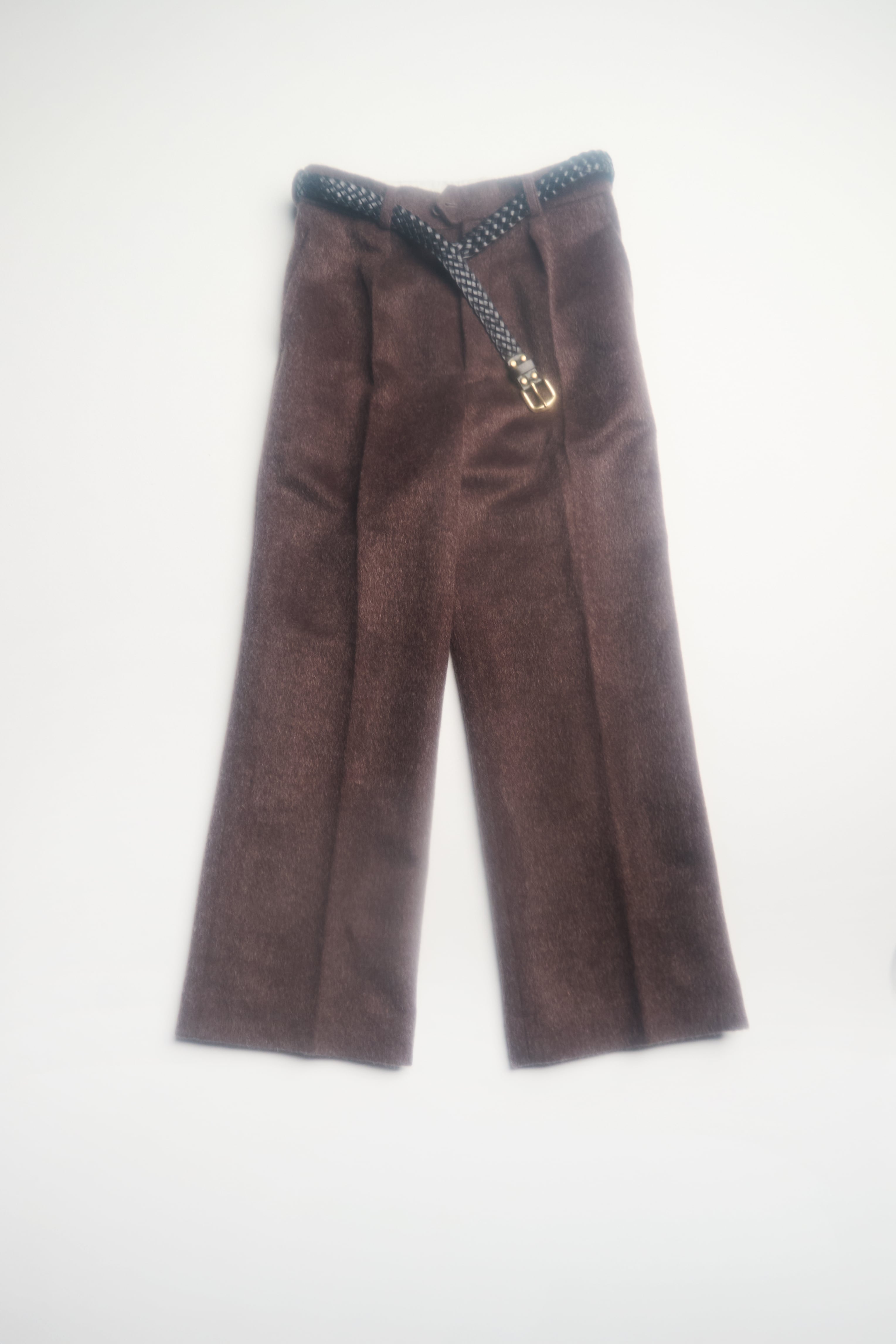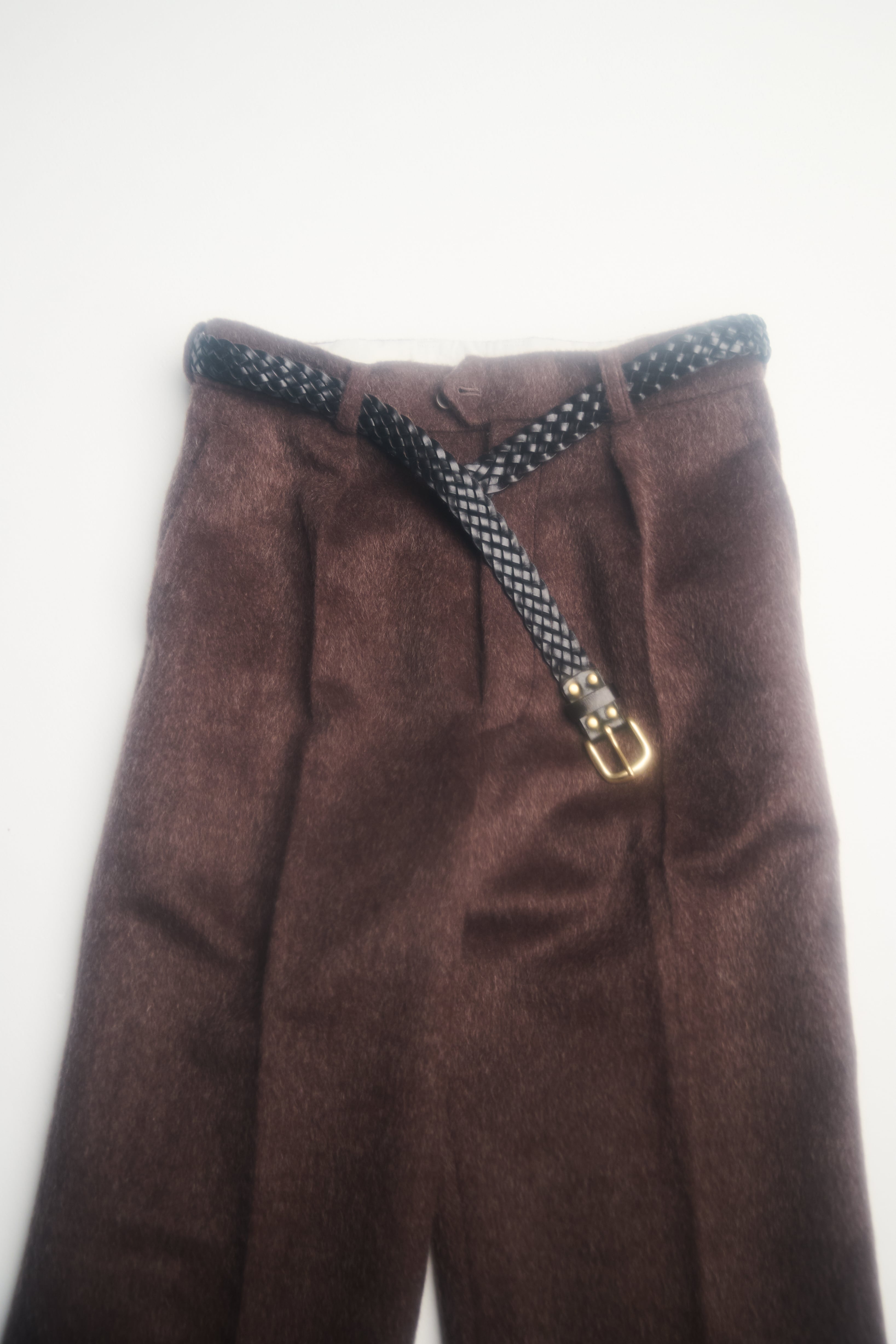For the fabric, we chose alpaca—typically used in tops and outerwear for its soft nap and weighty, elegant drape—to create a refined contrast and an unexpected, luxurious texture.