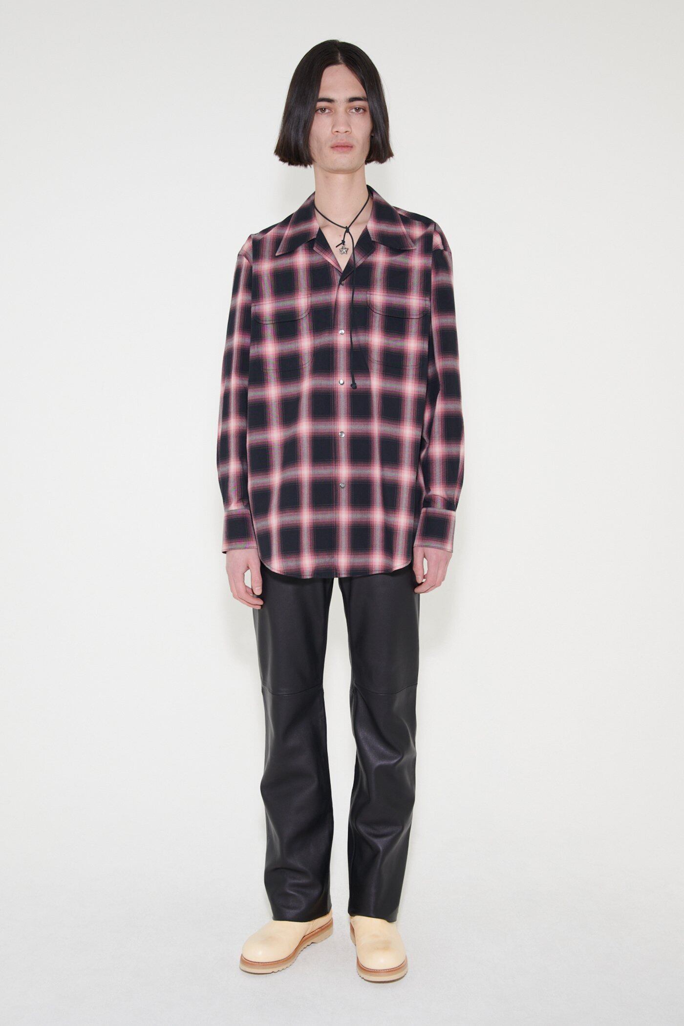 パールスナップボタンで開襟、襟デカめってちょーやべー!